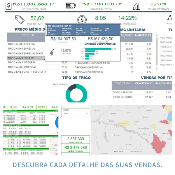 Vendas por região, produto, representante ou cliente;